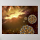 Buckyballs floating in interstellar space near a region of current star-formation featured with atoms.