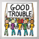El diseño de la protesta Good Trouble muestra a un grupo de personas marchando bajo el lema "Good Trouble". Promover la justicia, especialmente en relación con los derechos civiles.
