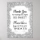Este letrero de bufet de dulces brillante plateado será el complemento perfecto para la barra de dulces en tu boda, cumpleaños, despedida de soltera o baby shower. Cuenta con un fondo brillante plateado con un recorte enmarcado con la frase "Gracias por hacer que esta noche sea tan dulce Por favor, tome una bolsa y llénela de golosinas".