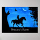 ¡Un hermoso poster para el amante de los caballos! Ideal para una habitación de chica o personalizarla para cualquier lugar. Una fantástica imagen de un caballo y una jinete a la luz de la luna con Oaktree y búho. Tiene un toque místico mágico.