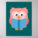 Búho de lectura rosa lindo diseño para un joven chica. Diseño animal lindo.