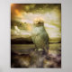 Impresionante foto de un búho con ojos místicos brillantes, rodeado de agua, montañas y cielo adorna este poster. Tanto si te gustan las lechuzas como la naturaleza o las dos cosas, este poster se sumará a tu decoración.