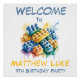 A vibrant watercolor-style illustration featuring pastel-colored building blocks arranged playfully atop a rainbow splash background. The blocks, in soft hues of yellow, blue, green, appear to be melting slightly, giving them a dreamy, whimsical effect. The dripping paint beneath creates a dynamic and artistic foundation, perfect for a fun and creative celebration.