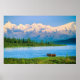 Wonder Lake, Bull moose feeds on vegetation, Alaska mountains in the distance, Denali National Park, Alaska