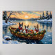 Bring unique, lovable charm to your holiday season with this distinctive Bull Terrier Christmas design! This magical scene features three sturdy, egg-headed Bull Terriers sitting attentively in a cozy wooden boat, gently floating on a serene snowy lake at sunset. The boat is beautifully adorned with glowing Christmas string lights and fragrant pine garlands, while the dogs wear festive scarves. They are surrounded by colorful wrapped presents and cheerful holly branches. Soft snowflakes gently fall, and the shimmering reflection of the lights on the water creates a truly magical winter holiday atmosphere. This design is a perfect Christmas gift for any Bull Terrier owner, dog lover, or admirer of festive and unique terrier art, capturing the serene joy of the season.