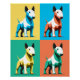 Descubra este elegante cuadro con cuatro coloridas variaciones de un toro terrier. Cada panel muestra al perro en una combinación de colores diferente, creando un ambiente animado y moderno. Esta pieza es ideal para los amantes de los animales y aportará un toque de originalidad y creatividad a su espacio.