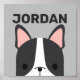 Un bonito diseño para alegrar el día. Este diseño presenta un bonito ilustracion personalizado de bulldog francés con un nombre personalizado en gris moderno sans serif estilo de fuente sobre fondo gris claro. Perfecta decoración personalizada de guarderías para niños y chicas.