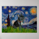 Póster Bulldog francés (negro 11) - Noche estrellada