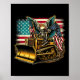 Póster Bulldozer Bandera Americana Calavera de Halloween