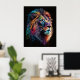 Póster Bunter Löwenkopf mit Farbtropfen