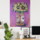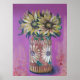 Acuarela y pintura de acrilo que representa un jarrón pintado de época lleno de girasoles frescos.