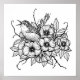 Ilustracion vector dibujado a mano de una hiela sobre un ramo de rosas de perro.