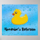 Un pato divertido y de caucho fresco con un amarillo brillante, sobre un fondo de agua azul con burbujas claras. Un diseño limpio y con burbujas, ideal para cualquier uso... baño de burbujas, ducha de bebé, negocio de lavado de coches o perros, cuidado infantil o temas de fiesta de piscina de verano. ¡Diviértete con el adorable juguete chirrido para niños y niños! Este diseño está disponible como un juego de regalos completo y a juego.