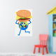 Un hombre del mundo personalizado sostiene una hamburguesa de queso gigante.