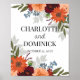 El diseño es moderno y sencillo, con flores de jardín de otoño en colores burdeos, naranjas y verdes con texto de personalizable. Personalice la plantilla con los detalles del boda, las fuentes, etc. que desee.