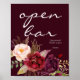 Póster Burgundy Marsala Floral Open Bar Rótulo Borgoña