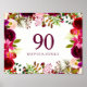 Póster Burgundy Red Floral Boho Rótulo 90 cumpleaños