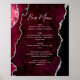 Póster Burgundy Red Silver Agate Script Wedding Bar Menu