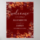 Póster Burgundy Rustic Floral Fall Wedding Welcome Sign