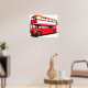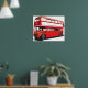 Un autobús rojo de dos pisos en la calle. Este diseño parece realmente efectivo en este Poster