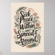 Descubra un diseño visualmente encantador que capta la esencia de buscar la paz en el interior y difundirla. Esta armoniosa obra de arte muestra suaves tonos tierra como el sabio rosa polvoriento verde y beige cálido complementado con tipografía fluida con un ambiente orgánico escrito a mano Rodeado de delicados ilustraciones naturales como plumas de flores silvestres y mandalas suave olas simbolizan la propagación de la tranquilidad. vibración animada perfecta para inspirar armonía interior