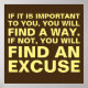 Cita motivacional poster con texto de color amarillo pálido sobre fondo marrón. El texto es " Si es importante para usted, encontrará una manera. Si no, encontrarán una excusa". Puede personalizar del color del texto y del fondo según su semejanza.