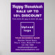 ¡Feliz Hanukkah! Deseándote alegría, paz y bendición de este festival de luces. Un feriado para celebrar este diciembre y para anunciar también su negocio. poster de personalizable con Hanukkah Sale, su nombre comercial y otra información. Poster que puede usar como material de marketing para atraer más clientes. Personalizar y úselo para convencer a más clientes de que compren sus productos o clientes para que les gusten sus servicios este Hanukkah. Los colores de diseño son textos en rosa y blanco sobre fondo morado. Los contenidos son Feliz saludo a Hanukkah, venta de textos con un porcentaje de descuento que ofrecerás, fechas de venta, tu nombre de negocio, logotipo, dirección, número de teléfono, correo electrónico y sitio web o tu página de red social de negocios. Compruebe la apariencia después de cargar el logotipo y escribir textos. Si la apariencia le resulta agradable, puede realizar su pedido ahora. Si necesita redimensionar y mover el logotipo y los textos para que encajen en este poster o en el tamaño y forma que elija, por favor cambie la herramienta de diseño. También puede realizar otros cambios en la herramienta de diseño según la apariencia de este poster que prefiera, como cambiar el color de fondo, el color del tipo de letra y el estilo del tipo de letra. ¡Feliz Hanukkah! Te deseo más ventas esta fiesta.