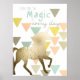 June Erica Vess es una artista contemporánea a la que le encanta utilizar líneas, patrones y colores vibrantes en sus pinturas. Esta divertida y ondulada impresión con una silueta de unicornio dorado y una cita motivacional ha sido oficialmente autorizada por el World Art Group. El lindo patrón colorido, el brillante unicornio y la inspiradora cita "Eres algo mágico" le agregarán un toque mágico a tu casa. June Erica Vess | 116907DEA.
