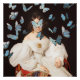 Remix de pintura vintage de una mujer con un vintage vestido blanco con mariposas azul pastel.