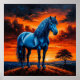 Póster Caballo azul en un vibrante paisaje atardecer