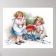 Un bello afiche vintage con dos lindos chicas jugando con conejillos, pintado por la ilustradora/artista comercial estadounidense Ellen Hattie Clapsaddle.