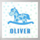 Póster de Caballo de Balanza Azul Bonito Estrella Nombre de Niños. Dibujo de juguete de caballo de balanza y patrón de estrella azul. Agrega tu nombre.