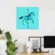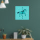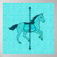 Imagen digital de medios mixtos de un caballo de carrusel clásico, en patrones mixtos, contra un fondo de baldosa arabesca - Turquesa / Peacock y aqua, acentuado con verde azulado