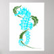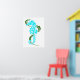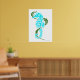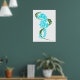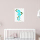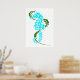Hipótesis de poster: caballito de mar azul, verde y algas sobre fondo blanco para los niños.