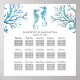 Esta tabla de casamiento de bodas de playa está diseñada como una plantilla de asiento de personalizable con mis caballitos de mar de color agua originales y coral en tonos suaves de azul y blanco. Perfecto para una boda de destino, esta tabla de asientos se puede personalizar fácilmente para que coincida con los detalles del evento. Como parte de mi plantilla de tablas de asientos para bodas, este diseño ofrece un toque costero y náutico que funciona maravillosamente para bodas, así como celebraciones relacionadas como duchas de novias, fiestas de compromiso y cenas de ensayo. Ideal para parejas que planean un evento de destino elegante, esta plantilla hace que la organización de sus invitados sea sencilla y elegante. Para ver la coordinación de tarjetas de acompañantes y tarjetas de nombre para tu boda de destino, visita mi tienda en www.zazzle.com/dotellabelle Arte y diseño de acuarela único de Victoria Grigaliunas de Do Tell A Belle.