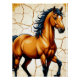 Una audaz ilustración de un majestuoso caballo dorado con una larga melena negra sobre un fondo de crema agrietada y dorada, que transmite fuerza, libertad, elegancia y movimiento dinámico para uso decorativo o editorial.