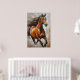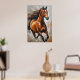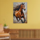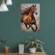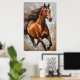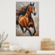 Un poster de estilo retrato HD de pintura al óleo que ilustra un caballo marrón que corre casualmente con el pelo fluyendo en el viento