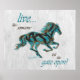 Brilla tu casa con este único Poster de caballos "One Of A Kind". Cuenta con una silueta de caballo galopante en turquesa, negro y oro y las palabras inspiradoras..."¡VIVE COMO SI ALGUIEN DEJARA LA PUERTA ABIERTA"! Este es un Diseño de Arte Gráfico Original creado por el artista Kerry Miller.