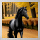 Caballo negro en medio de un vibrante paisaje forestal otoñal, exuberante belleza y elegancia