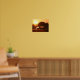 Piel negra y caballo aturdido pastoreando el poster de fotos de la nublada salida del sol. Tamaño para 14x11