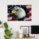 El águila calva 4 de julio poster viene con una hermosa cabeza de águila calva y mira con una bandera estadounidense detrás de él. Esta es una hermosa foto en este poster