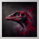 Un retrato abstracto mostrando la cabeza de un dinosaurio extinto. Pintada con colores rojo y carbón vegetal en un estilo artístico, esta fascinante obra de arte se despliega sobre un oscuro fondo oscuro y turbio. Presenciar la belleza en los misteriosos ecos del pasado en este fascinante artículo.