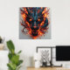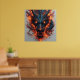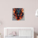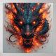 Una impresionante cabeza de dragón, con escamas azules vibrantes, ojos naranjas vívidos y acentos parecidos al fuego, muestra la intensidad y el misterio de una bestia mítica.