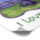 Poster de Cuidada Cabeza de Oveja y Tules de Arte creado por Imagine That! El diseño presenta nuestro arte original de una linda oveja del frente y la parte posterior con las palabras de abajo, me encanta EWE a mi espalda. Este lindo arte de ovejas en blanco y negro tiene dos imágenes lado a lado de la cabeza de la oveja lana y el trasero de la oveja parado en un campo verde de hierba con una cerca marrón y un cielo azul, con textura púrpura, pintado por Traci Van Wagoner, un talentoso artista de libros para niños. Mira esta adorable oveja que viene y va con esta diversión te amo poster.