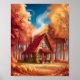 Póster Cabina acogedora en bosque otoñal