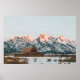 Buenos días Cabina del Sunrise en el Parque Nacional de Grand Teton vida silvestre, invierno, nieve, fondo, bello, gran tetón, monumento, paisaje, mañana, montaña, naturaleza, exterior, pico, paisaje, paisaje, cielo, viajes,, vintage, retro,ilustracion,