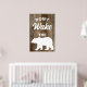 Este arte mural captura con gusto un diseño rústico. Radia calor natural y textura contra una pared de madera angustiada. El texto "DON'T WAKE THE" se imprime cuidadosamente junto a una silueta de oso con letra en negrita blanca. El tipo de letra tiene una calidad dibujada a mano que se añade a su auténtico atractivo hecho a mano. Este diseño no sólo evoca un sentido de confort, sino que también fomenta una profunda conexión con la naturaleza, lo que lo convierte en un gran añadido a la decoración de las cabañas.