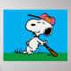 Snoopy, el querido beagle de la tira cómica de Peanuts, es a menudo retratado jugando béisbol con su amigo de plumas Woodstock y el resto de la banda de Peanuts. Aquí aparece mientras está en el bate.