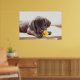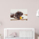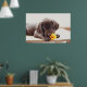 Póster Cachorro de chocolate con pato de juguete