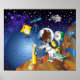 Artista de Zolotareva. Aventuras increíbles para pequeños descubridores. Increíble viaje. cosmos personalizado. Perro astronauta y alienígena. Las caravanas de barcos cósmicos con perro a bordo se van en busca de un planeta de reemplazo.